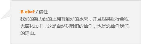 我们的努力配的上拥有最好的水果,并且对其进行全程无菌化加工,这是自然对我们的信任,也是您信任我们的理由。
