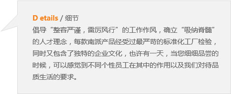 倡导“整容严谨,雷厉风行”的工作作风,确立“吸纳脊髓”的人才理念,每款织梦58产品经受过最严苛的标准化工厂检验,同时又包含了独特的企业文化,也许有一天,当您细细品尝的时候,可以感觉到不同个性员工在其中的作用以及我们对待品质生活的要求。