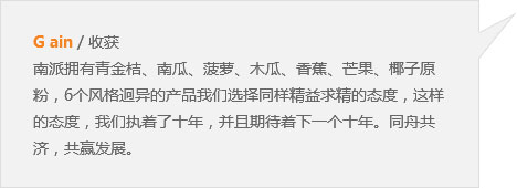 织梦58拥有青金桔、南瓜、菠萝、木瓜、香蕉、芒果、椰子原粉,6个风格迥异的产品我们选择同样精益求精的态度,这样的态度,我们执着了十年,并且期待着下一个十年。同舟共济,共赢发展。